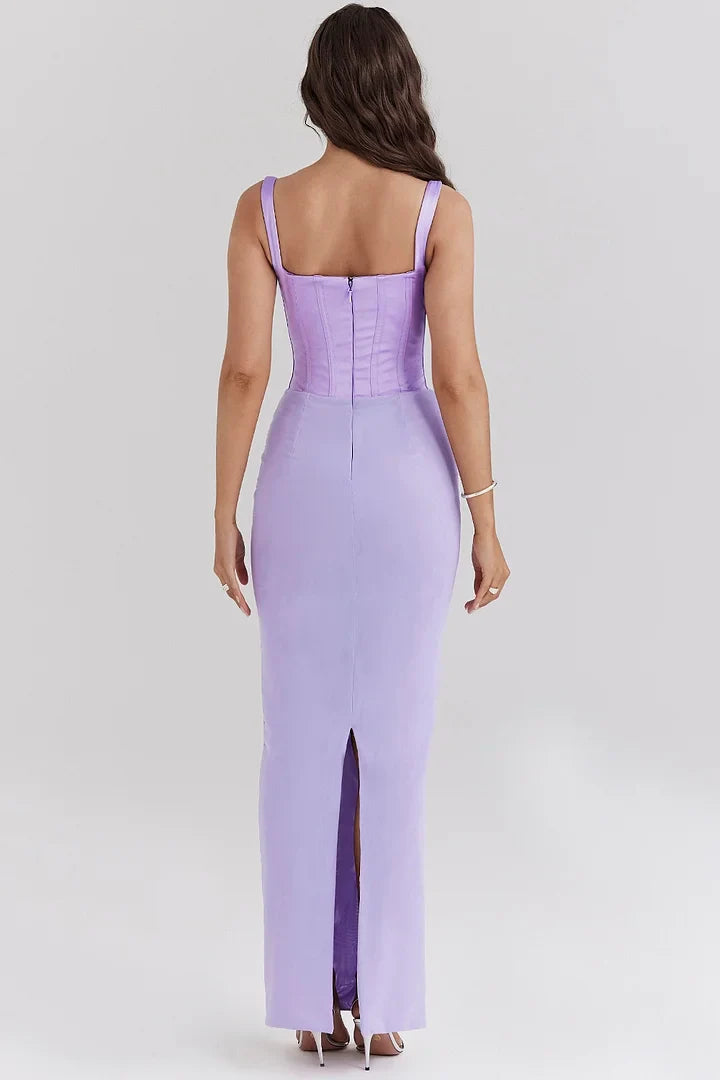 The Breeze Dress is where modern allure meets timeless elegance. Draped in a dreamy lavender hue, this gown is designed to turn heads with its figure-hugging silhouette and beautifully structured bodice. The corset-inspired detailing enhances the waistline while offering a bold yet refined touch, creating a look that is both powerful and feminine.